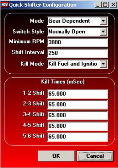 Gear Dependent – Unique shift kill times for each gear change. This option requires a gear indicator setup.
